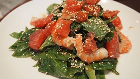 先來前菜 - 香橙蝦味噌菠菜莎拉