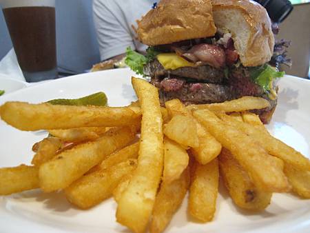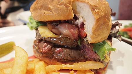 - 雙層培根起司漢堡(七分熟)