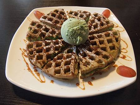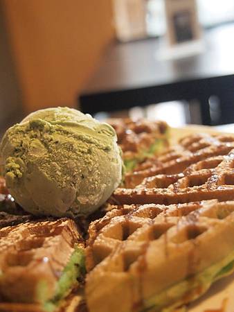 我點的是焦糖醬班蘭窩夫配綠茶雪糕。